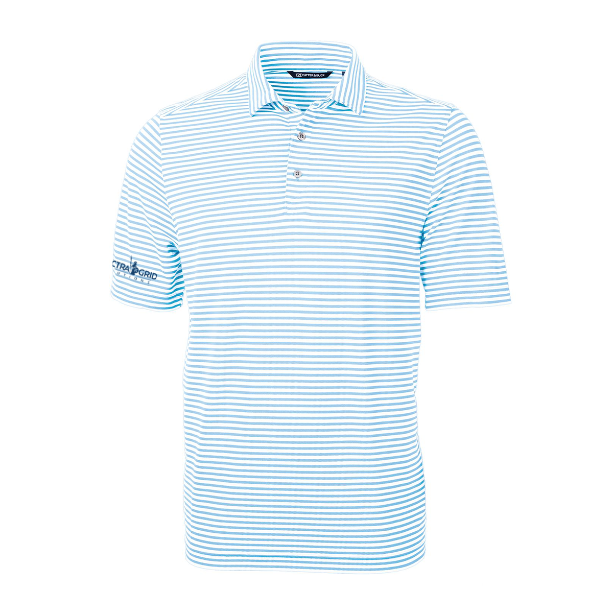 High quality certified eco-friendly recycled polyester is blended with drytec polyester and spandex for stretch, a cooling effect, and UPF sun protection, resulting in a versatile, sustainable, and comfortable striped polo for you and the planet.