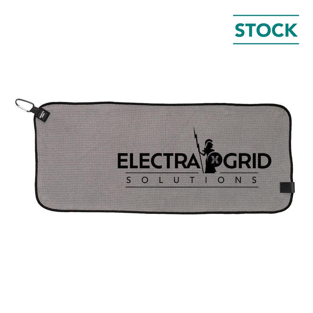 | 28" X 12" Magnetic Waffle Golf Towel. Strong magnet for easy pickup with golf club or attaching to golf cart. Soft and absorbent towel with waffle texture. Comes with carabiner for easy golf bag attachment. |